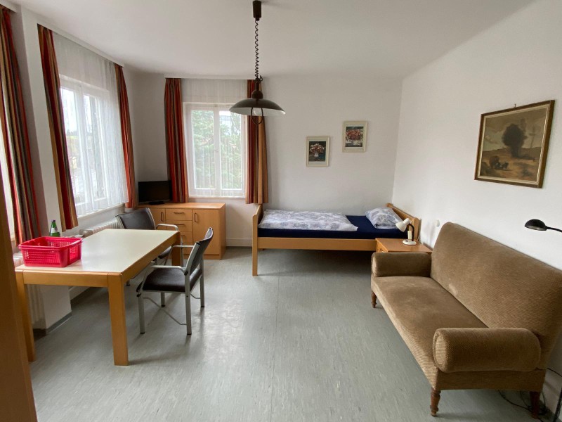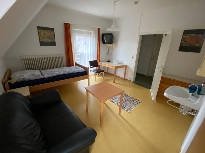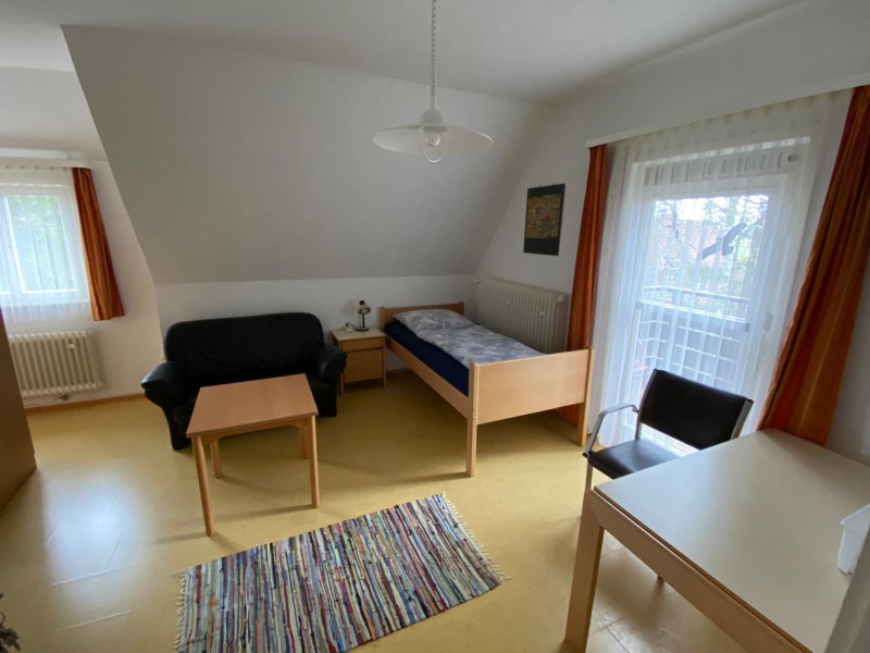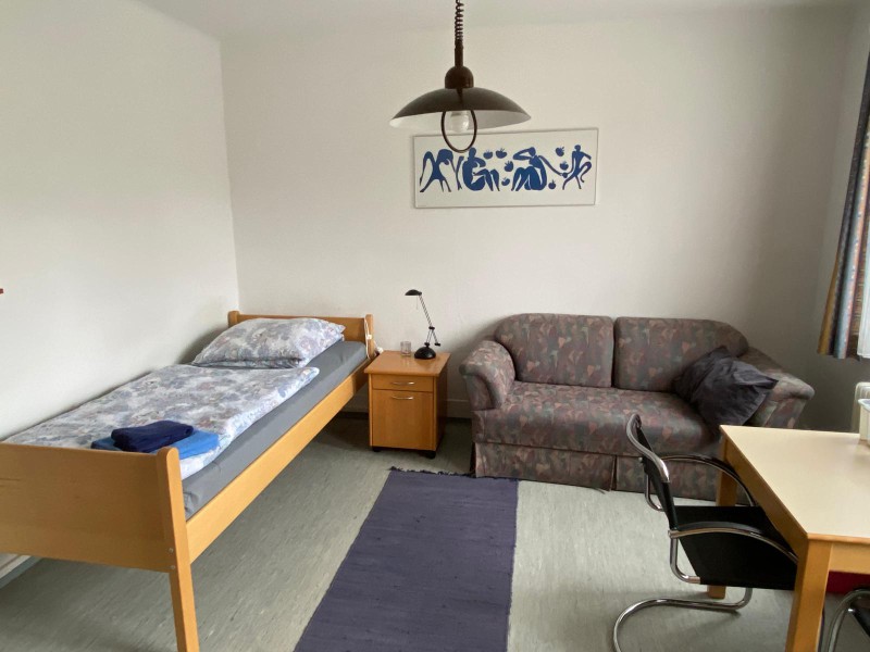 Die Zimmer sind großzügig und hell und individuell eingerichtet, mit Waschbecken ausgestattet, teilweise mit eigenem Balkon, TV und W-Lan sind vorhanden, Bettwäsche u. Handtücher werden gestellt. Ein großer, gemütlicher Aufenthaltsraum mit Kachelofen und TV steht für die Gäste zusätzlich zur Gemeinschaftsküche mit Essraum zur Verfügung.